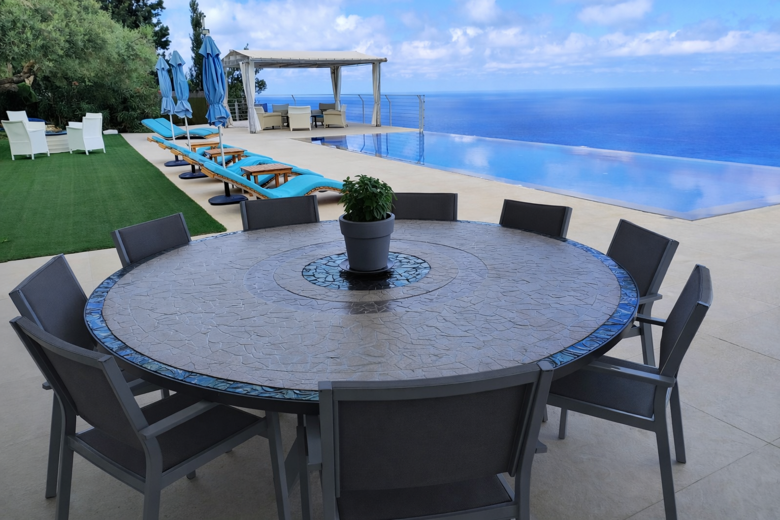 Villa Vine has an amazing panoramic view over the Ionian blue water sea as well as a view over its private infinity swimming pool (12x4.5m).
