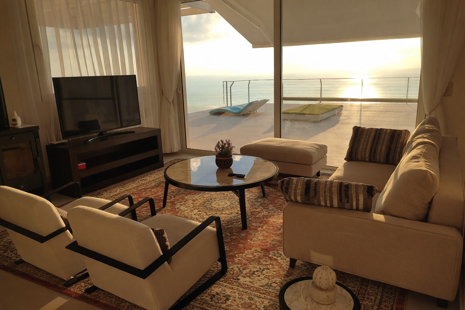 Days that begin with natural light and end with sunset reflections by the pool.